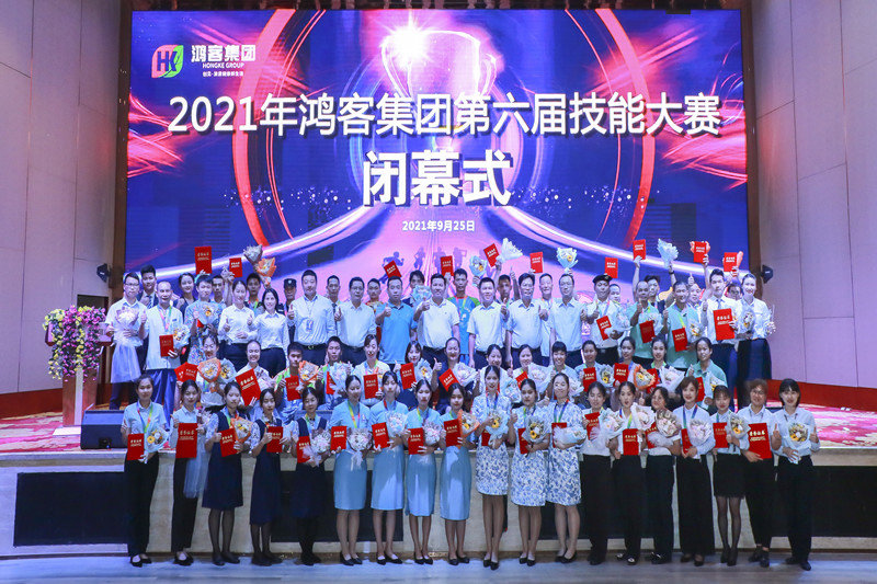 9月25日下午,鸿客集团第六届员工技能大赛在富龙山宴会厅圆满落幕,现场播放《我们竞技奋斗的样子-第六届技能大赛》视频回顾了本次大赛精彩瞬间。闭幕现场宣布了团队赛、单项赛的获奖名单,集团常务副总裁蔡雪辉对大赛进行致辞,并与集团公司领导为各项赛事优胜团队及个人颁发奖牌及奖金等,祝贺各位选手在比赛中赛出了风采、取得了佳绩。