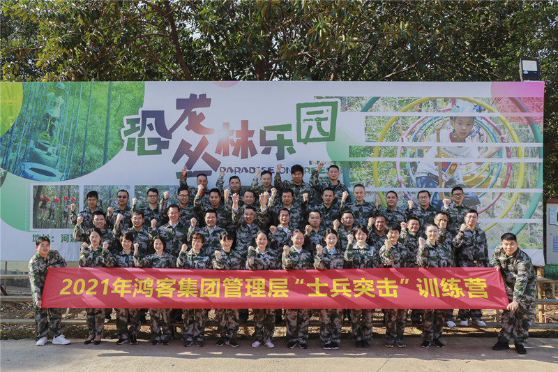 2021年2月20日,由文旅研学管理公司组织、鸿客集团各公司各部门管理层参与的“士兵突击”素质拓展活动在客天下国际研学拓展基地热血举办。本次拓展活动从激情融合、团队历练、自我管理、集体荣誉、责任担当等方面组织策划展开。